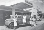 🢡1942 A new Chevrolet, MFG by Howard-Cooper, is parked in front of Carr Chevrolet at Broadway Street and Watson Avenue. It became Beaverton Fire Department Engine No. 4 for the City of Beaverton. From left: Guy Carr, Richard Doty (driver), unknown, John Wright and Lee George.