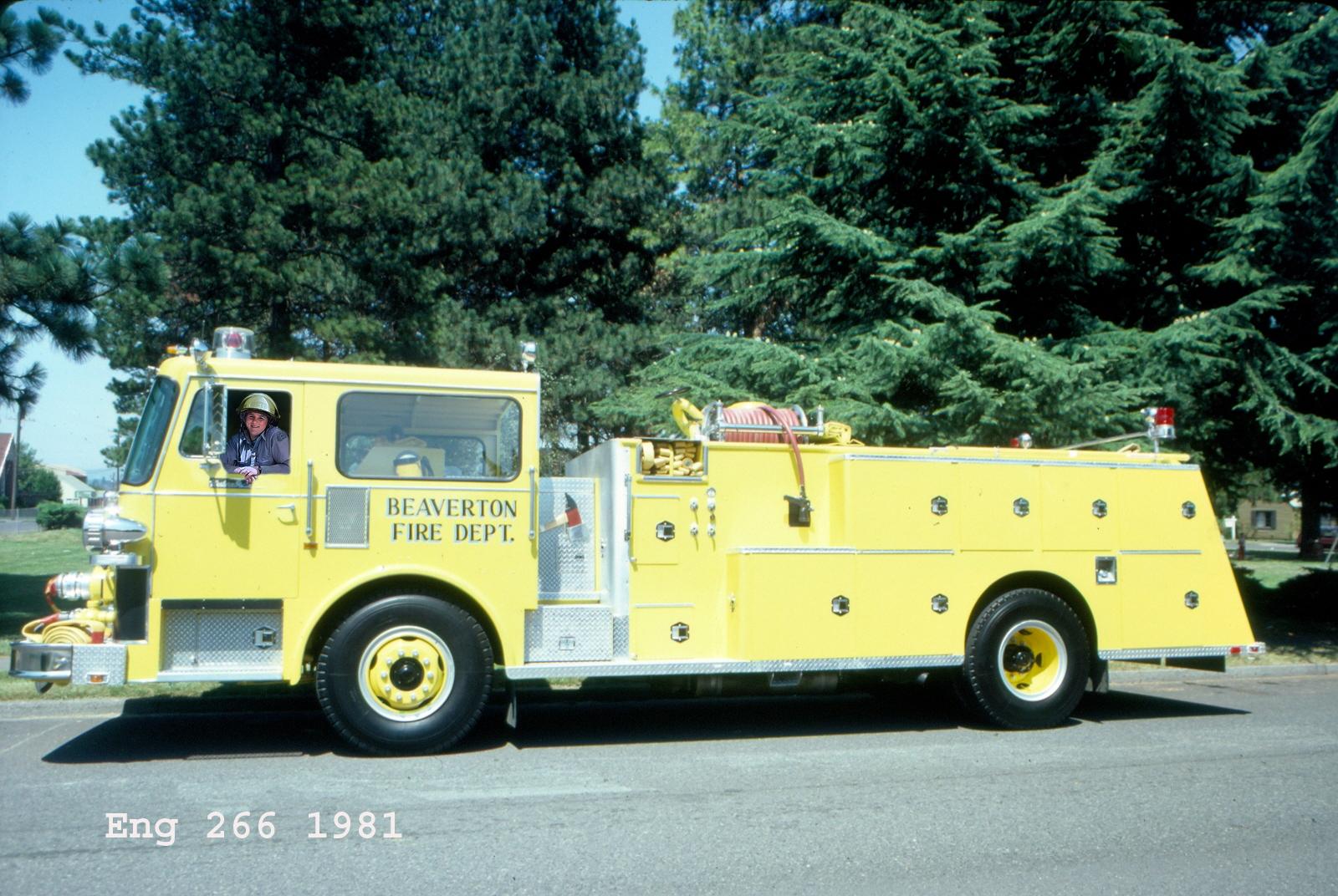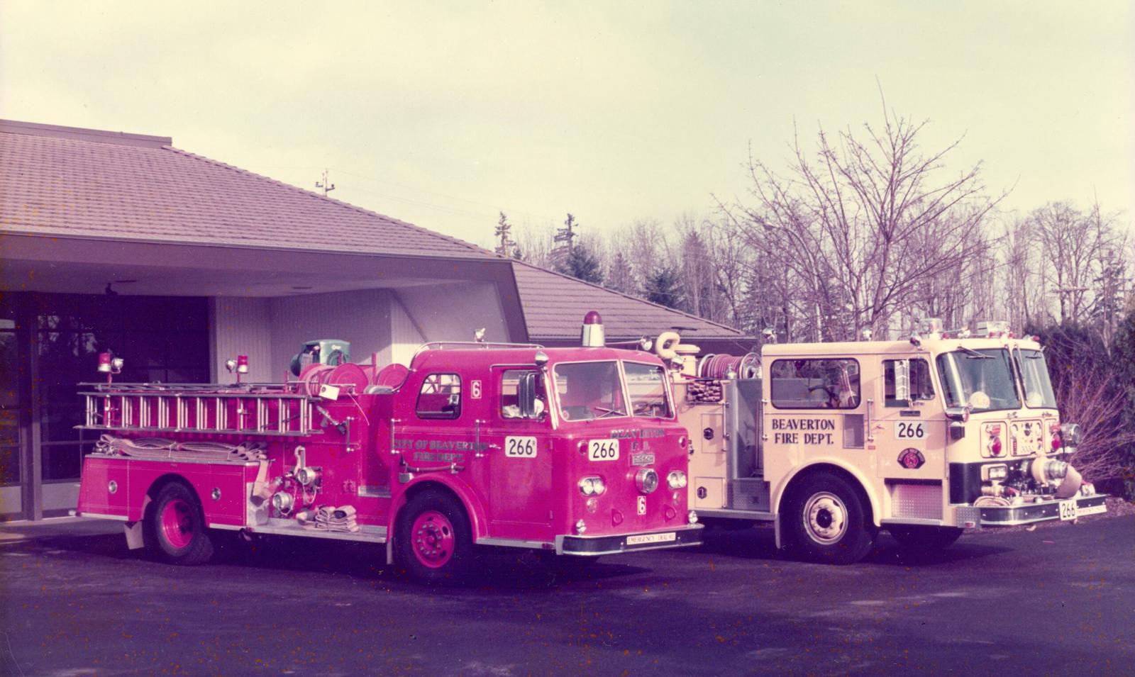 🢡 1972 The city adds a second fire station No. 266 at SW Brockman and Davies Road. Pictured are Engine 266 and Engine 266-R.