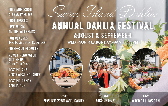 Visit the festival at 995 NW 22nd Ave. in Canby from August through September, open Wednesdays through Sundays from 9 a.m. to 5:30 p.m.. Check the event calendar at www.dahlias.com to see the lineup of bands and vendors so you can join them and immerse yourself in the vibrant world of dahlias!