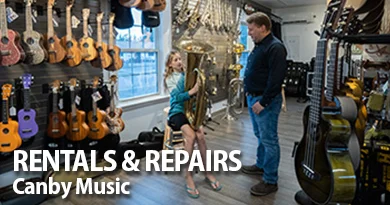 Chris started chatting with the owner, Brian Haines, and asked in a sort of offhand way if Brian thought that he could teach him the guitar. He’ll never forget the response: “No hesitation, no pause, just ‘Of course I can,’” Chris recalls. Thus began a friendship that has spanned a decade or more, involving multiple generations of both the O’Neil and Haines families. Three generations of the O’Neil family take lessons at Canby Music, covering a wide array of instruments — including guitar, ukulele, flute, violin, drums and saxophone. Every Wednesday night, the family comes together at Canby Music for a group lesson and jam session.