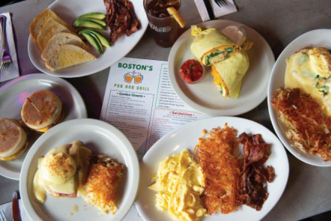 11 p.m.; Friday, 9 a.m.–midnight; Saturday, 8 a.m.–midnight; and Sunday, 8 a.m.–11 p.m. Boston’s extensive menus offer something for everyone.