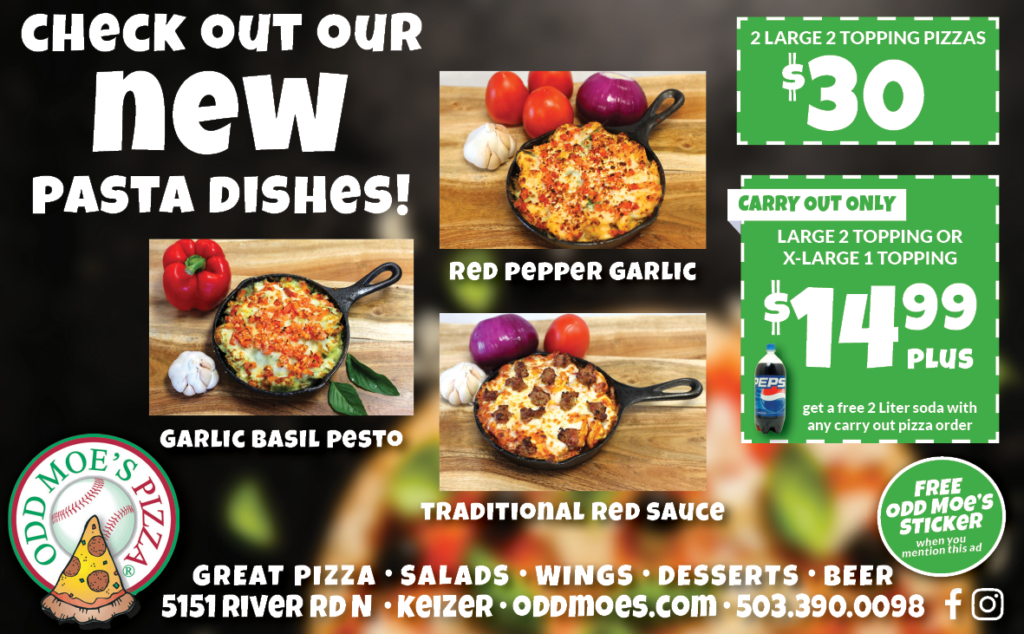 Odd Moe’s Pizza is located at 5151 River Road N. in Keizer. Order by Phone at (503)390-0098 or order online at oddmoes.com. They offer catering too!