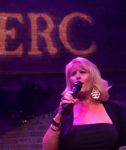 Then she took her experience and started her own film location business, Ascot Locations, which became very successful. In 1982, Elizabeth met and dated Lorin Dreyfuss, a very funny comedy writer/actor/producer and brother of the actor Richard Dreyfuss; they would meet again and marry in 1993. It wasn’t until she retired and moved to Palm Springs that Richard heard Elizabeth sing with a jazz band: he said, “Wow I had know idea you can sing like that, you are a born performer and should be doing more.” So she wrote a cabaret called “Relatively Singing: An Evening of Cabaret and Sibling Revelry,” which she performed with her sister Dela, and has since written six cabaret shows. The show was a hit and they performed it many times. Later, Elizabeth performed with a jazz band.