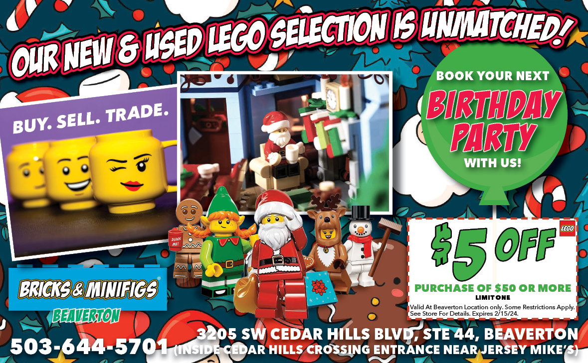 Bricks & Minifigs Beaverton is located at 3205 SW Cedar Hills Blvd., #44, inside Cedar Hills Crossing (enter near Jersey Mike’s). Call (503) 644-5701, email beaverton@bricksandminifigs.com, or visit their Instagram @bambeaverton or Facebook.com/bambeaverton. To book a party, visit bricksandmininfigs.com/beaverton. The store is open Mon.–Sat., 11 a.m. to 6 p.m., Sun., noon to 5 p.m.