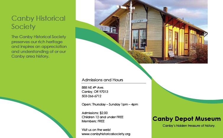 The Canby Depot Museum is located at 888 N.E. Fourth Ave, Canby. For more information, call them at 503-266-6712 or email depotmuseum@canby.com. Visit Facebook for updates on new exhibits and events.