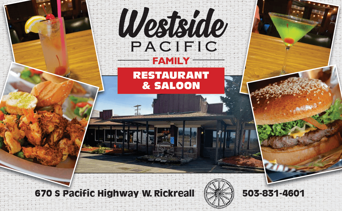 Jasmine has always lived in the Dallas area and enjoys her local regulars. The Rickreall community definitely has that small-town feel that can often be found in rural Oregon. “The customers are my favorite part,” she says, “Everyone is so friendly, and I love being able to joke around with them.” So next time you’re craving a hot, homemade meal served alongside a friendly local crowd, stop by Westside Pacific Family Restaurant & Saloon. You’ll know you’re there by the wagon wheel out front and the aroma of freshly baked delights and homestyle comfort food coming from within.