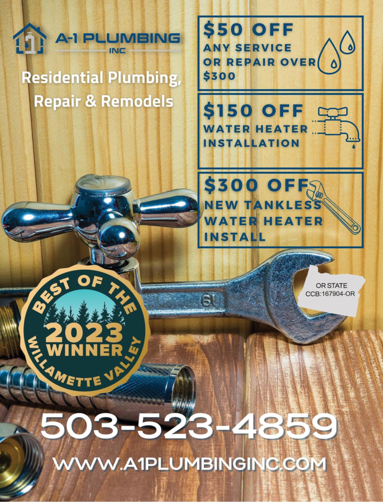 Looking for reliable and efficient plumbing services in the Salem area? Look no further than A-1 Plumbing, Inc. They are your go-to plumbing experts, providing superior installation, servicing, and repairs for all types of plumbing and drain issues. Whether it’s clogged drains, broken pipes, or water heater woes, A-1’s team of skilled technicians goes beyond “basic plumbing” to provide customers with intelligent and comprehensive solutions. Named “Best of the Willamette Valley” in both 2022 and 2023, A-1 has set the standard for the industry, and it’s a high bar to be sure!